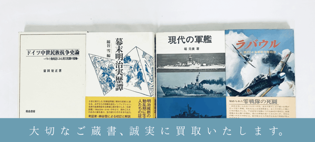 軍事・古地図・古写真・戦前資料 軍事・古地図・古写真・戦前資料の取り扱い種別 一例 軍艦海軍台湾韓国朝鮮中国航空機資料軍事郵便戦車・戦闘機旧植民地関連資料満州資料第二次世界大戦資料自衛隊資料進水式絵葉書古市街地図古新聞観光パンフ古写真鳥瞰図絵葉書空軍・陸軍旅行チラシ戦争関係資料古雑誌 買取事例 ※買取価格は当時のものです。相場などにより変化いたしますことご了承ください。 『白襷隊 旅順籠城回想録ヨリ』の買取は誠実・安心の古書 尾花屋にご相談ください。 砲隊鏡/SUSS GOERZ BUDAPESTの買取は誠実・安心の古書 尾花屋にご相談ください。 六糎高角双眼望遠鏡の買取は誠実・安心の古書 尾花屋にご相談ください。 飛行日本 の買取は誠実・安心の古書 尾花屋にご相談ください。 海軍軍人 将校旧蔵史料 の買取は誠実・安心の古書 尾花屋にご相談ください。 海軍雑誌 海と空 の買取は誠実・安心の古書 尾花屋にご相談ください。 天文学研究者自筆研究書類・資料の買取は誠実・安心の古書 尾花屋にご相談ください。 兵器学假教程(普通科砲兵用) 車輌 第二巻 車體ノ部の買取は誠実・安心の古書 尾花屋にご相談ください。 軍艦絵葉書の買取は誠実・安心の古書 尾花屋にご相談ください。 1 2 › 入荷情報 【新入荷!】『滞支漫録』/¥15,000 【新入荷!】『伊能大図総覧 上下巻+解説書』/¥230,000 『国際写真情報』買取をいたしました。 宮崎清隆直筆原稿『支那派遣軍 前後編』買取をいたしました。 切り抜き『西川満小説』大量に買取をいたしました。 戦前軍艦絵葉書『軍艦鹿島進水記念』2枚の宅配買取をいたしました。 1 2 3 4 › 買取のご依頼はこちら よくある質問 選べる3つ買取方法 出張買取 宅配買取 店頭買取 尾花屋は全国古書籍商組合連合【日本の古本屋】加盟店です。